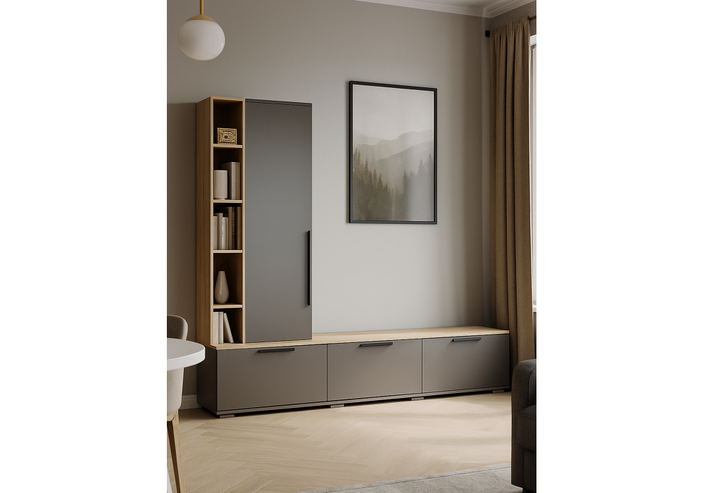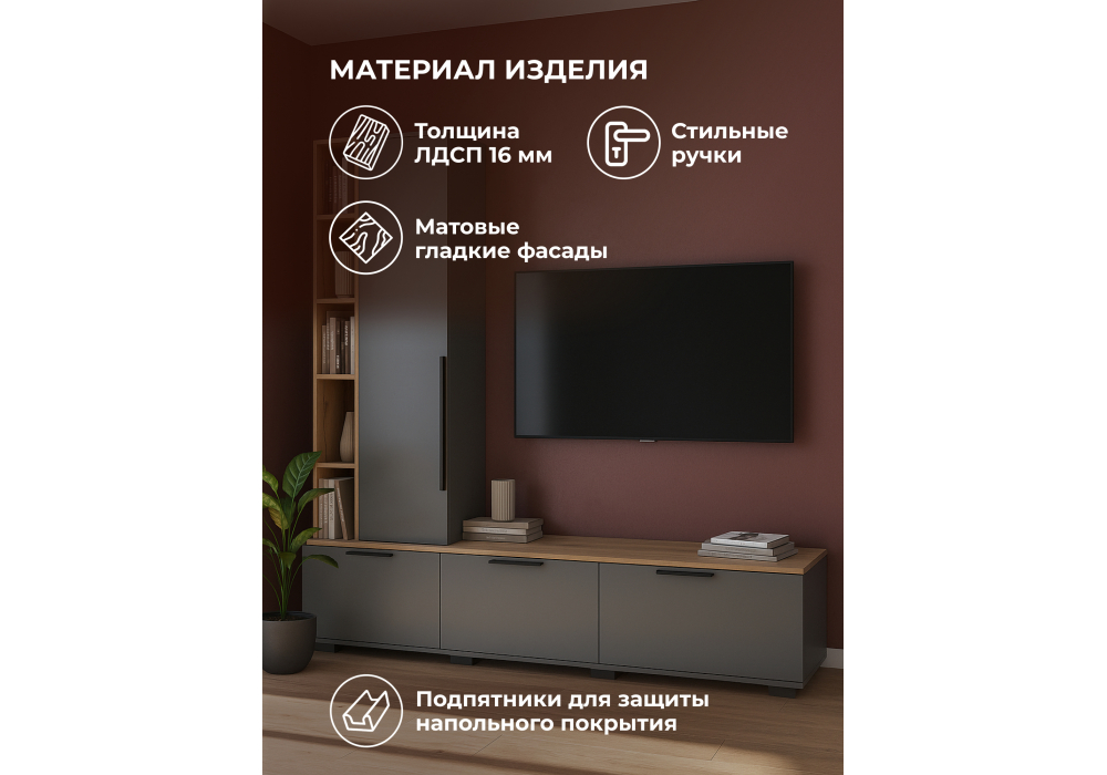 ТВ-тумба Woodville Филеста графит, дуб вотан