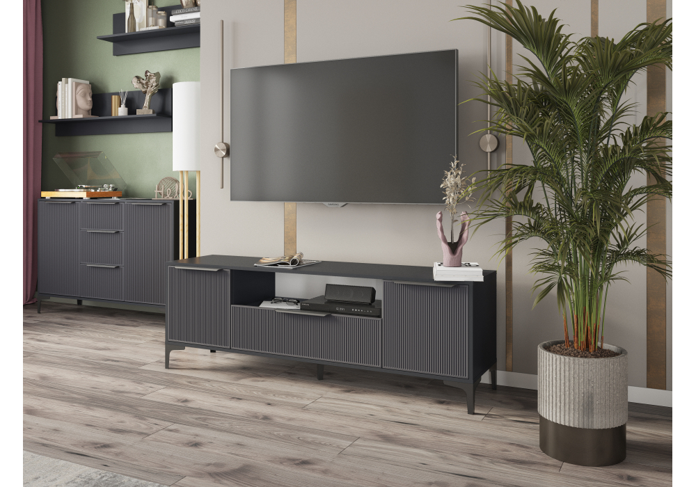 Вы можете купить ТВ-тумба Woodville Иадама графит, графит софт оптом в нашем магазине, предложим цену с оптовой скидкой.