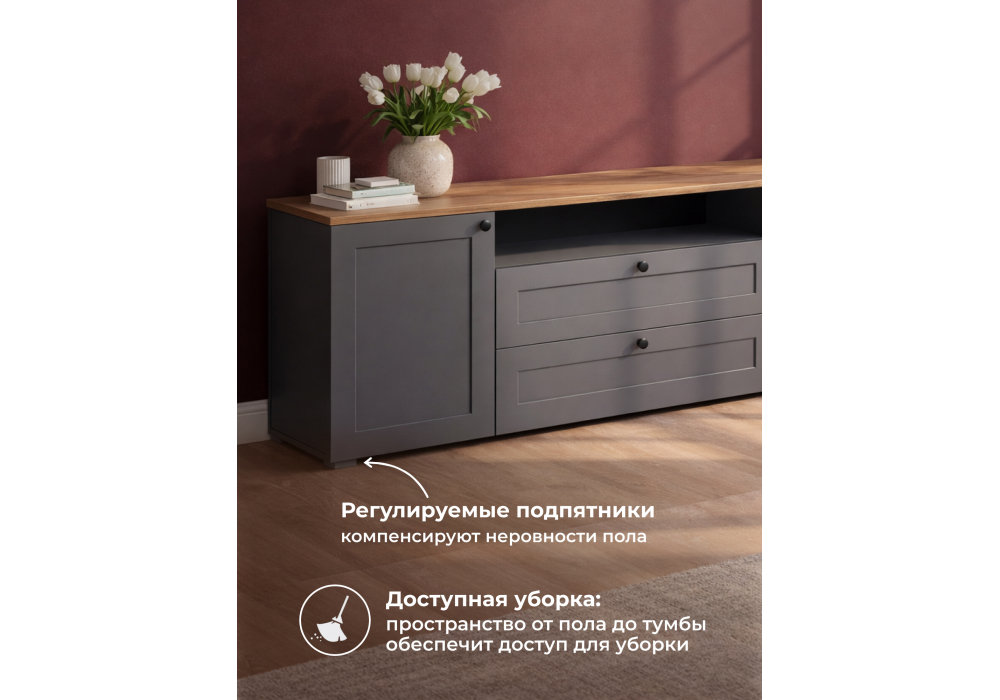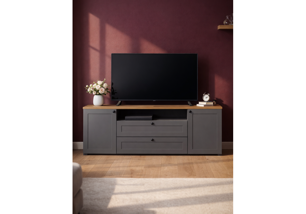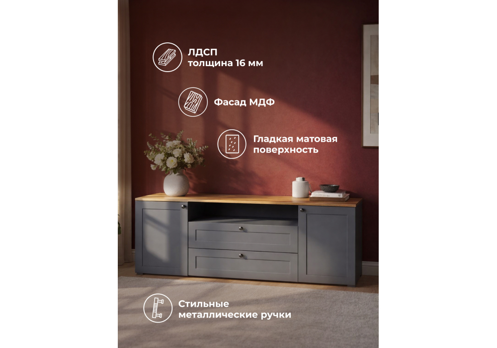 ТВ-тумба Woodville Опра серый графит, дуб золотой craft