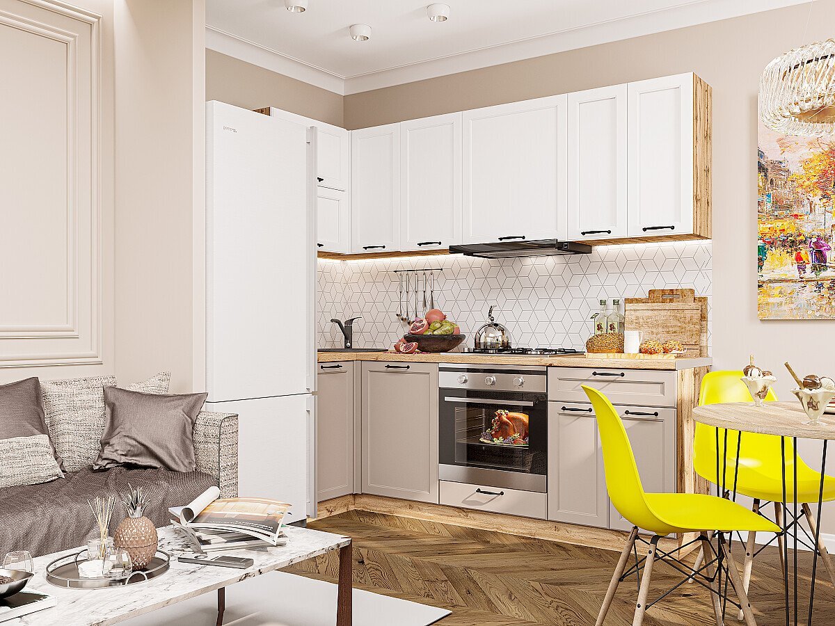 Угловая модульная кухня Барселона-04 Белый/Кашемир - Дуб Вотан 2140*950/2200*600