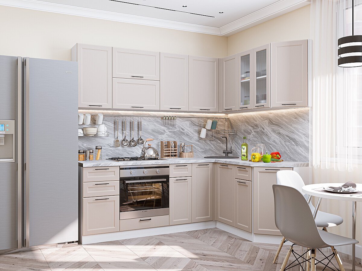 Угловая модульная кухня Барселона-05 Кашемир - Белый 2140*2200/1600*600