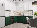 Угловая модульная кухня Дублин-02 Special White/Special Green - Graphite 2140*2200/2400*600