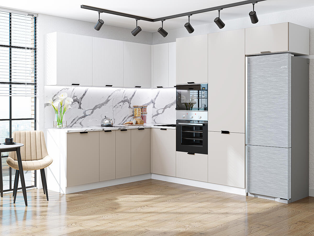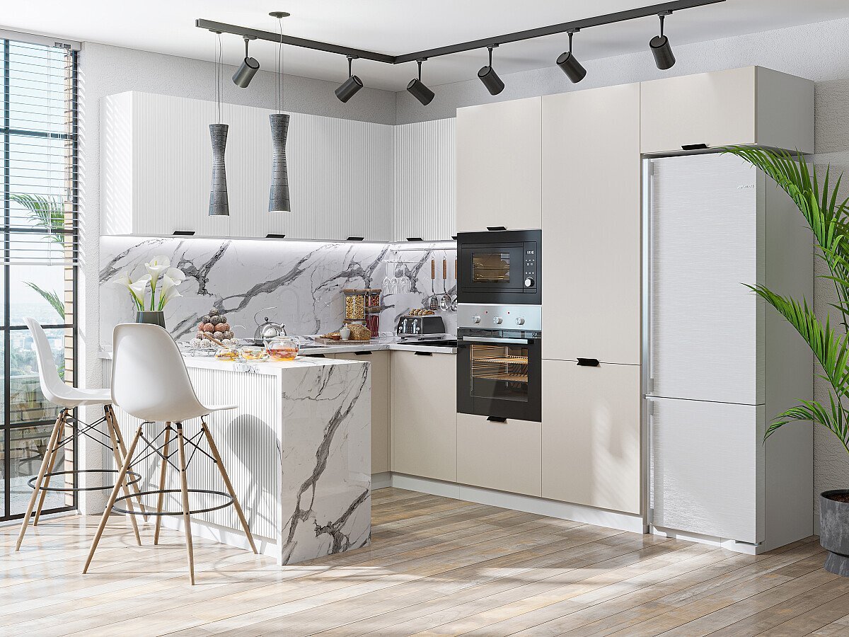 Кухня Евро / Евро Лайн - отличное сочетание итальянского стиля и современных мебельных решении. Актуальные матовые оттенки — это стильно и самодостаточно, при этом фасады отлично будут смотреться в комбинации с разными цветами и фактурами. Кухонный гарнитур Евро сочетает гладкие и рифленые фасады с вертикальными бороздками, они смотрятся естественно и не утяжеляют пространство. Использование рифленых фасадов в интерьере — доступный и простой прием, при этом достаточно эффектный. С их помощью любая, даже самая скучная поверхность становится декоративным элементом, они одинаково хорошо смотрятся как в современном, так и в классическом интерьере.