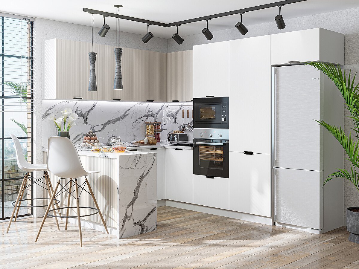 Кухня Евро / Евро Лайн - отличное сочетание итальянского стиля и современных мебельных решении. Актуальные матовые оттенки — это стильно и самодостаточно, при этом фасады отлично будут смотреться в комбинации с разными цветами и фактурами. Кухонный гарнитур Евро сочетает гладкие и рифленые фасады с вертикальными бороздками, они смотрятся естественно и не утяжеляют пространство. Использование рифленых фасадов в интерьере — доступный и простой прием, при этом достаточно эффектный. С их помощью любая, даже самая скучная поверхность становится декоративным элементом, они одинаково хорошо смотрятся как в современном, так и в классическом интерьере.