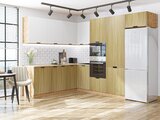 Вы можете купить Угловая модульная кухня Евро Лайн-03 Белый/Дуб песочный - Дуб Вотан 2140*2150/2800*600 оптом в нашем магазине, предложим цену с оптовой скидкой.