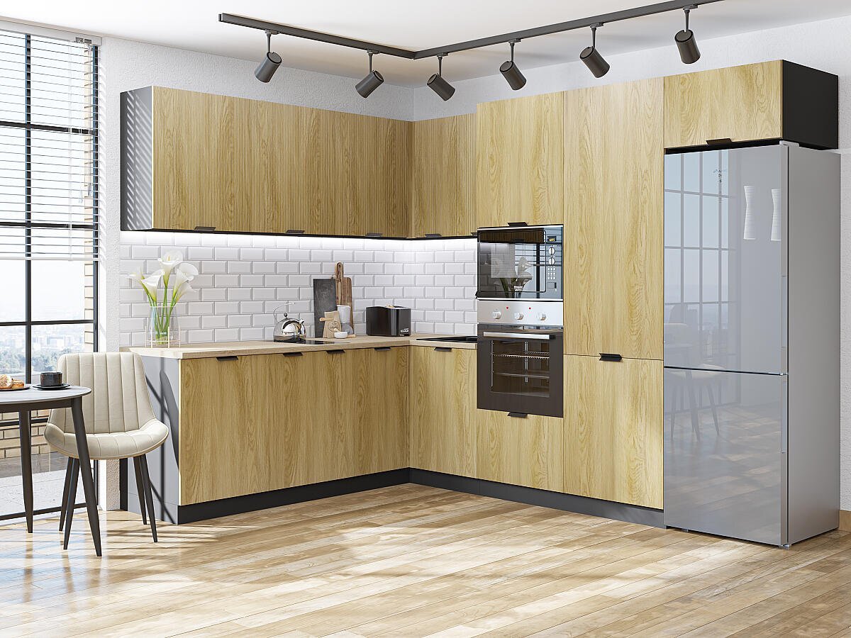 Угловая модульная кухня Евро Лайн-03 Дуб песочный - Graphite 2140*2150/2800*600