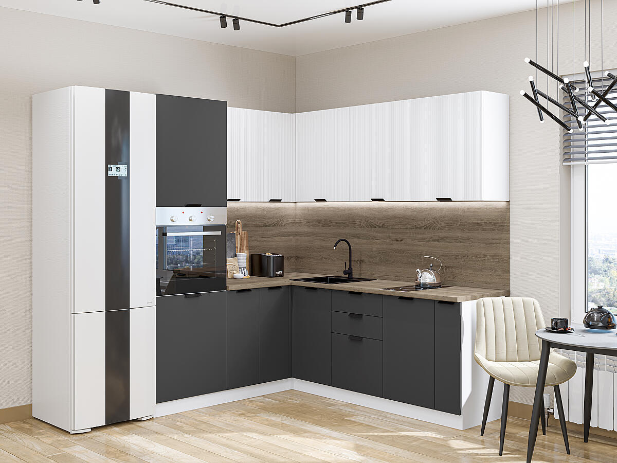 Угловая модульная кухня Евро Лайн-04 Белый/Антрацит - Белый 2140*1800/2150*600