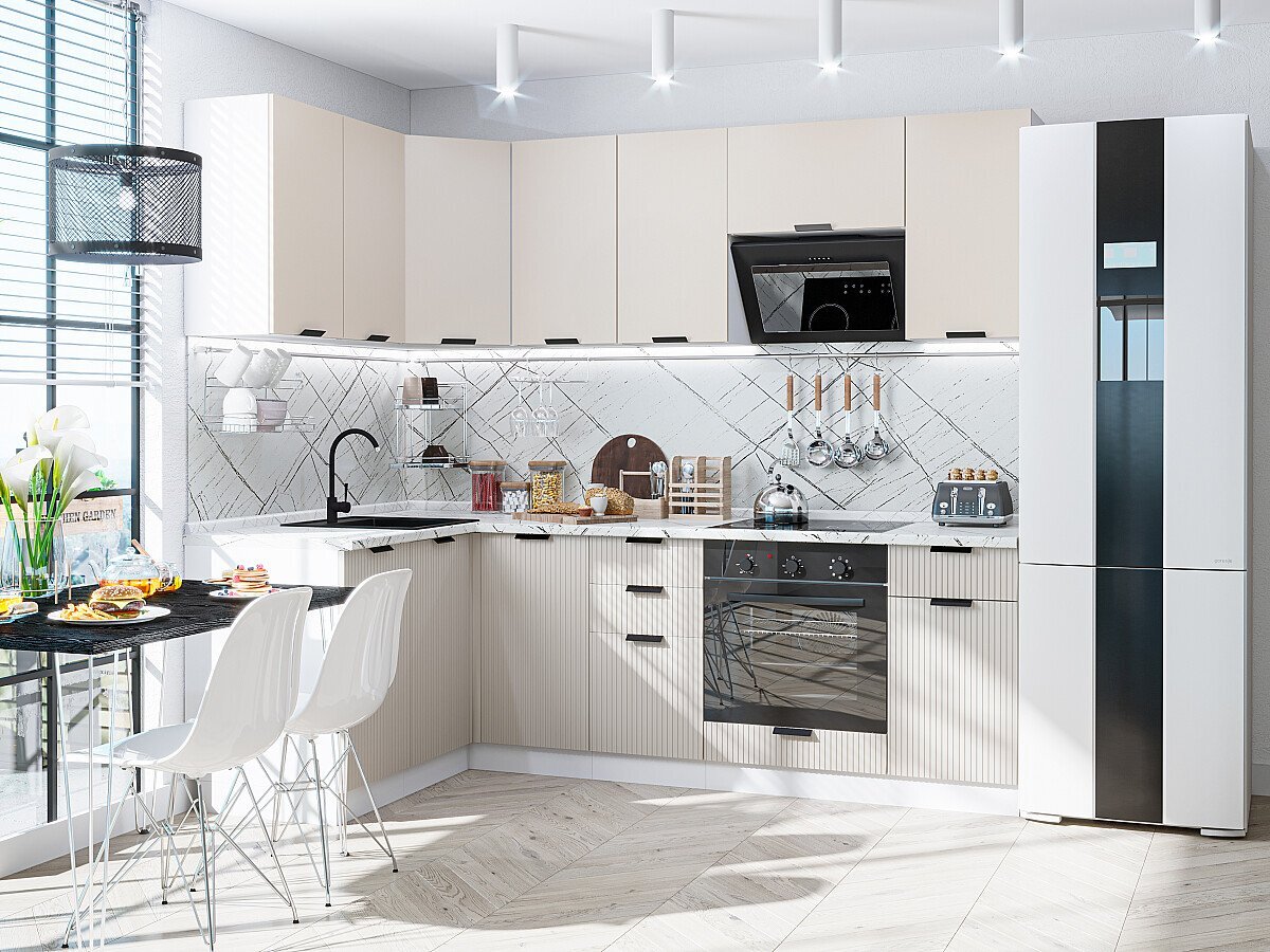 Кухня Евро / Евро Лайн - отличное сочетание итальянского стиля и современных мебельных решении. Актуальные матовые оттенки — это стильно и самодостаточно, при этом фасады отлично будут смотреться в комбинации с разными цветами и фактурами. Кухонный гарнитур Евро сочетает гладкие и рифленые фасады с вертикальными бороздками, они смотрятся естественно и не утяжеляют пространство. Использование рифленых фасадов в интерьере — доступный и простой прием, при этом достаточно эффектный. С их помощью любая, даже самая скучная поверхность становится декоративным элементом, они одинаково хорошо смотрятся как в современном, так и в классическом интерьере.