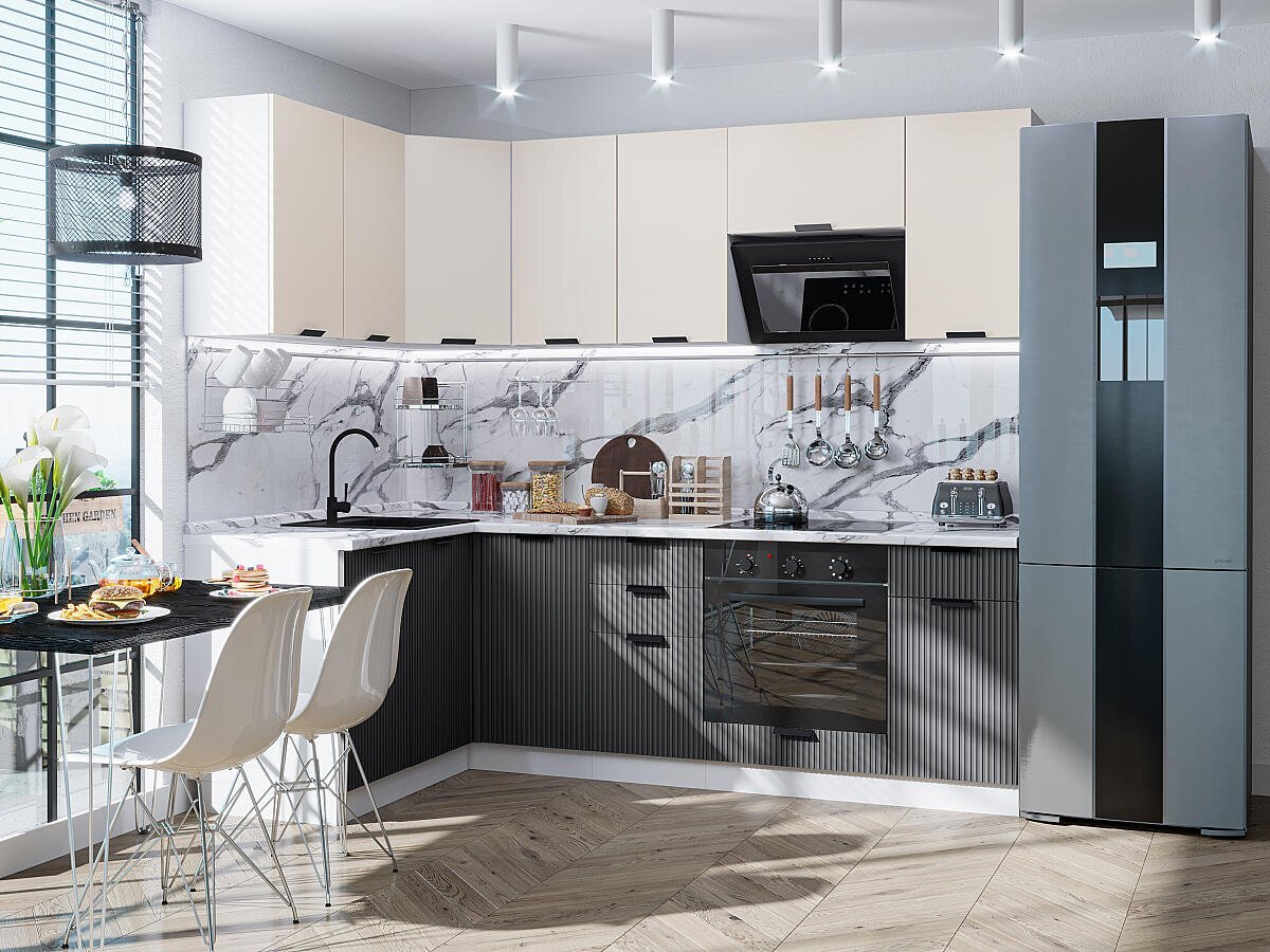Угловая модульная кухня Евро Лайн-05 Агат/Антрацит - Белый 2140*1400/2400*600