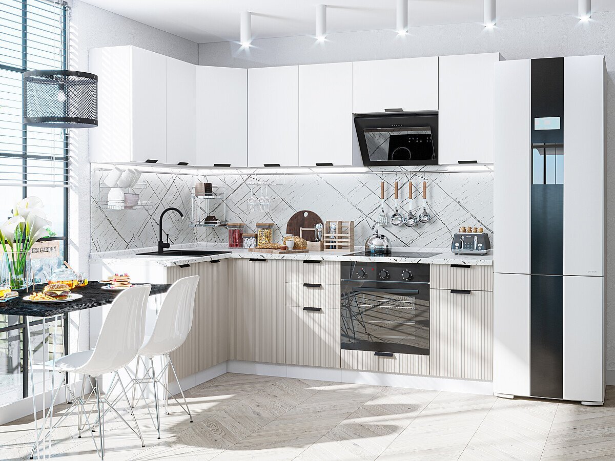Кухня Евро / Евро Лайн - отличное сочетание итальянского стиля и современных мебельных решении. Актуальные матовые оттенки — это стильно и самодостаточно, при этом фасады отлично будут смотреться в комбинации с разными цветами и фактурами. Кухонный гарнитур Евро сочетает гладкие и рифленые фасады с вертикальными бороздками, они смотрятся естественно и не утяжеляют пространство. Использование рифленых фасадов в интерьере — доступный и простой прием, при этом достаточно эффектный. С их помощью любая, даже самая скучная поверхность становится декоративным элементом, они одинаково хорошо смотрятся как в современном, так и в классическом интерьере.