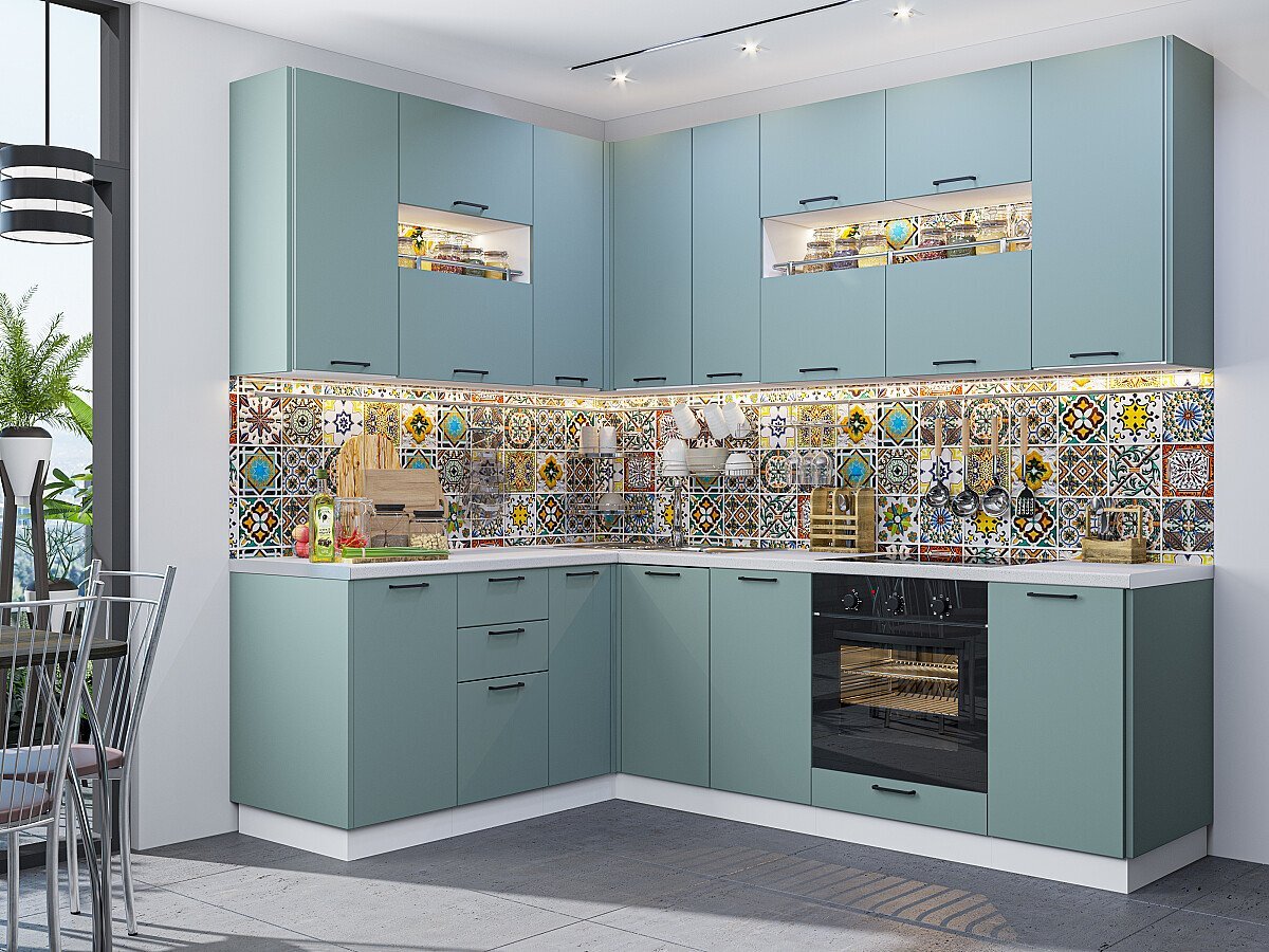 Угловая модульная кухня Флэт-02 Grey-green In 2S - Белый 2340*1700/2400*600