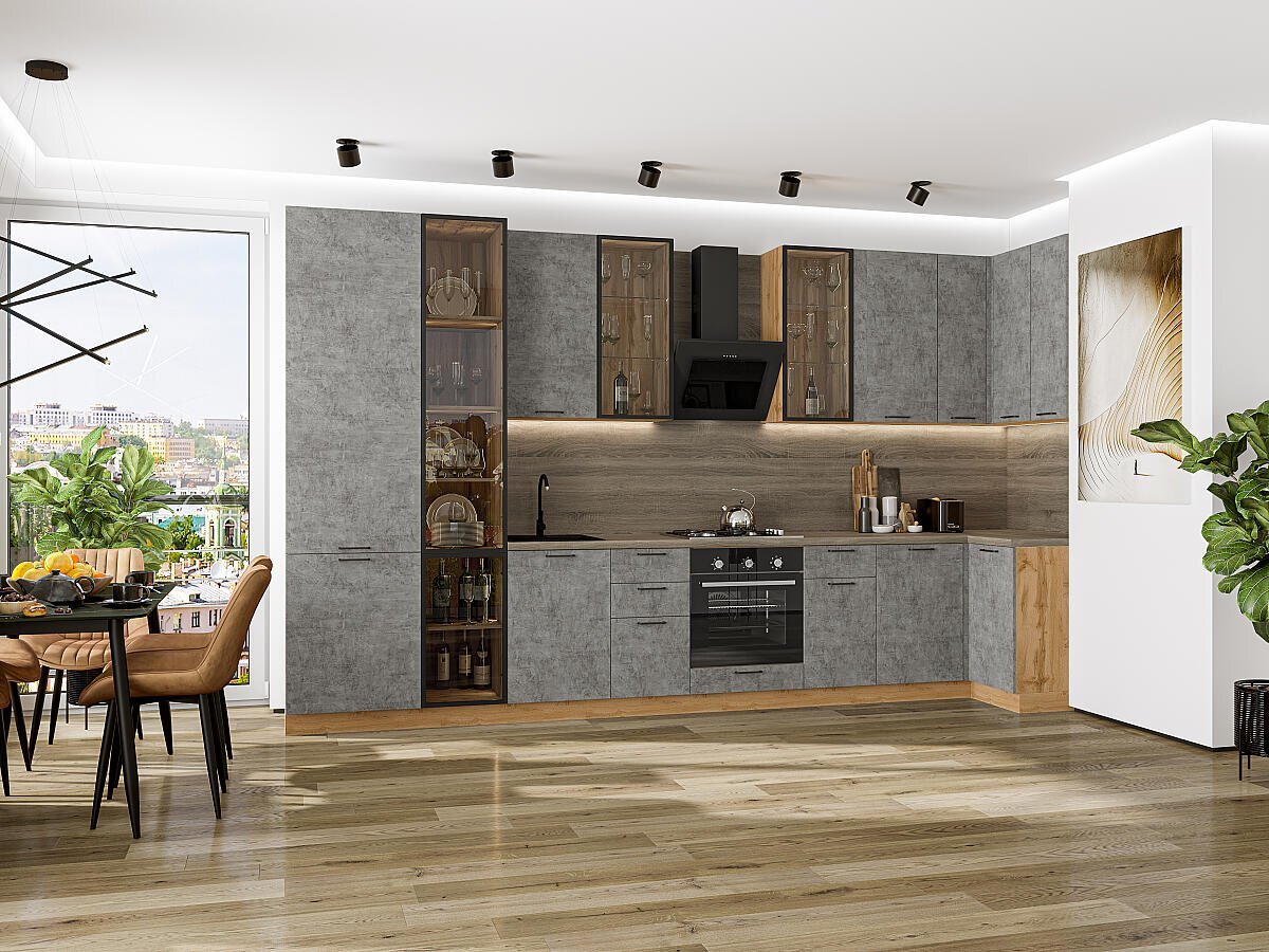 Угловая модульная кухня Флэт-05 Temple Stone 2S - Дуб Вотан 2340*4000/1000*600