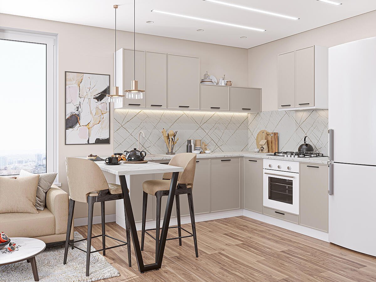 Кухня Фрейм — это сочетание маленьких незаметных деталей, которые складываются в общую композицию удобства комфорта и надежности. Выглядит такая кухня одновременно легкой и функциональной. Гладкие фасады смотрятся оригинально и стильно, а тонкая рамка по периметру разбавит — однотонность — гарнитура, выделяя центральные части шкафов, что делает его более эстетичным и привлекательным. Однотонная — поверхность — фасадов гармонично сочетается с темной фурнитурой и структурой дерева. Фасады с покрытием ПЭТ можно отнести к антивандальным — У них хорошая устойчивость к царапинам и выцветанию, за счет чего фасады сохранят свой внешний вид на протяжении многих лет.