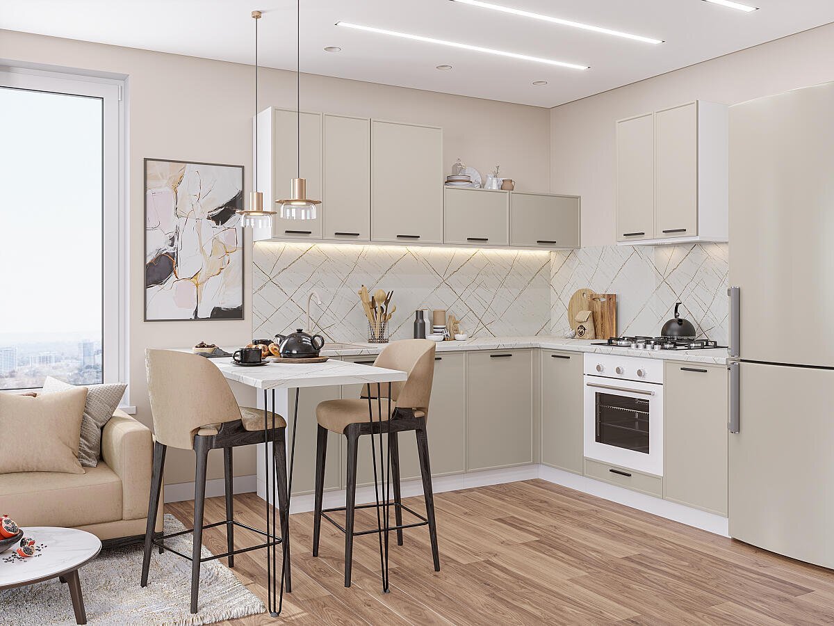 Угловая модульная кухня Фрейм-03 Cream Silk - Белый 2140*2200/2000*600