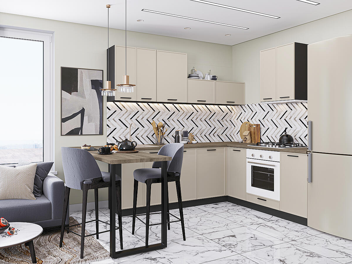 Угловая модульная кухня Фрейм-03 Cream Silk - Graphite 2140*2200/2000*600