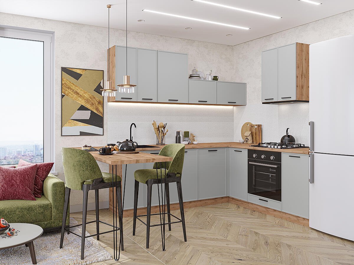 Угловая модульная кухня Фрейм-03 Grey Silk - Дуб Вотан 2140*2200/2000*600