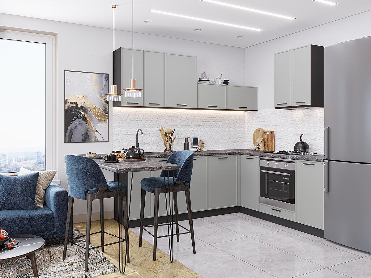 Угловая модульная кухня Фрейм-03 Grey Silk - Graphite 2140*2200/2000*600