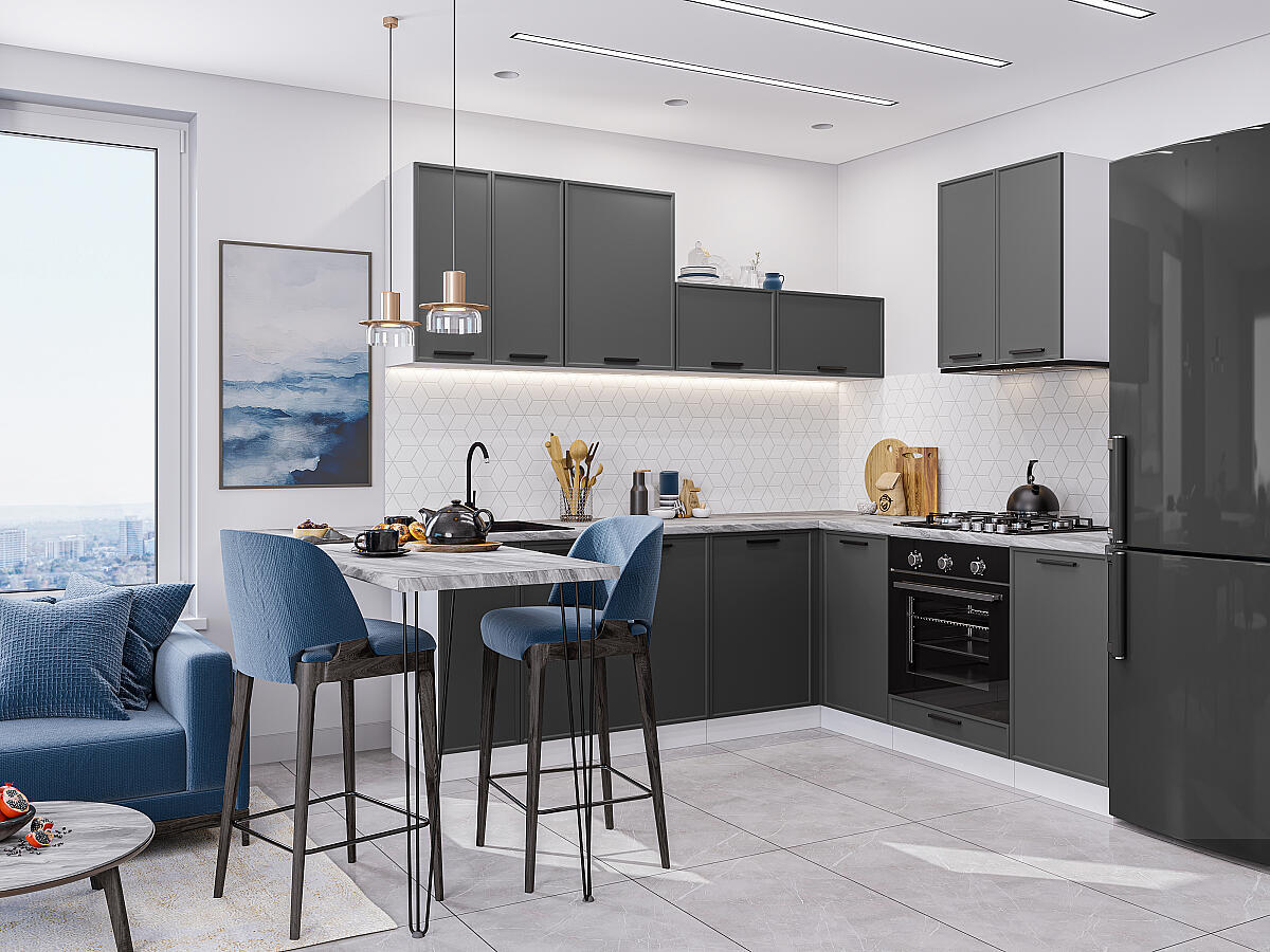 Кухня Фрейм — это сочетание маленьких незаметных деталей, которые складываются в общую композицию удобства комфорта и надежности. Выглядит такая кухня одновременно легкой и функциональной. Гладкие фасады смотрятся оригинально и стильно, а тонкая рамка по периметру разбавит — однотонность — гарнитура, выделяя центральные части шкафов, что делает его более эстетичным и привлекательным. Однотонная — поверхность — фасадов гармонично сочетается с темной фурнитурой и структурой дерева. Фасады с покрытием ПЭТ можно отнести к антивандальным — У них хорошая устойчивость к царапинам и выцветанию, за счет чего фасады сохранят свой внешний вид на протяжении многих лет.