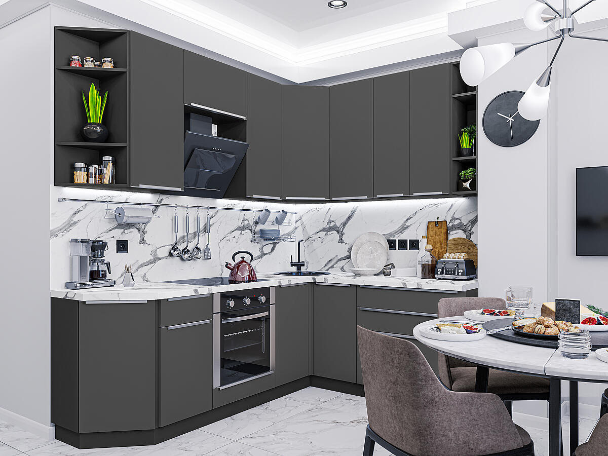 Угловая модульная кухня Фьюжн-04 Stormy Silk - Graphite 2140*2500/1800*600