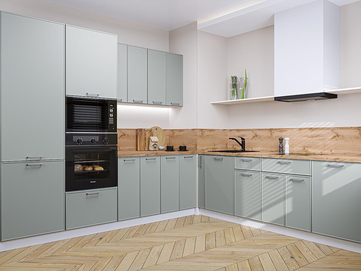 - объемная рамка добавляет кухонным фасадам структурности и глубины