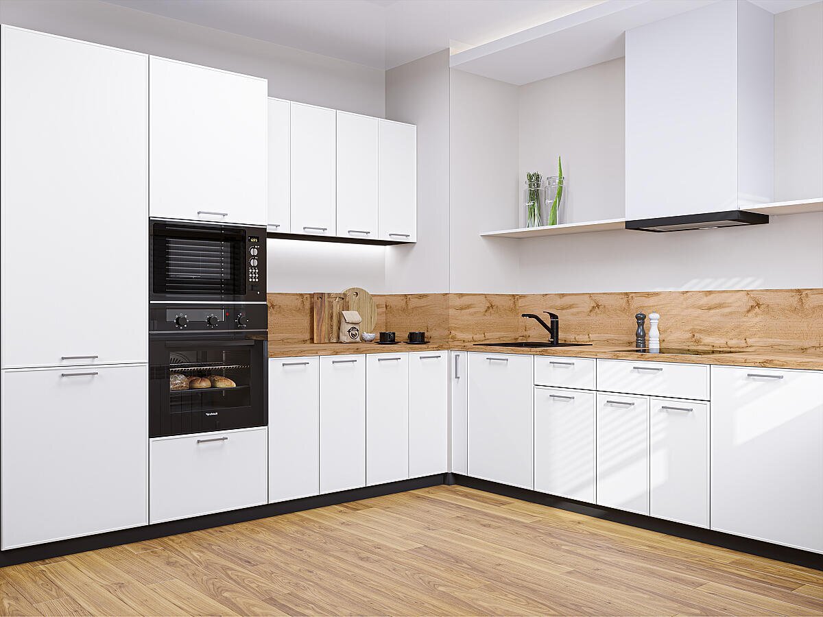 Кухня Квадро имеет безупречную архитектуру фасада и лаконичный рисунок фрезеровки. Отличное решение для интерьера в минималистичном стиле. Фасады с узкими рамочными элементами изготовлены из МАФ толщиной 19 мм. Гладкая и приятная на ощупь поверхность устойчива к повреждениям, не потускнеет со временем от воздействия ультрафиолета. При касании на поверхности не остаются загрязнения и отпечатки пальцев.