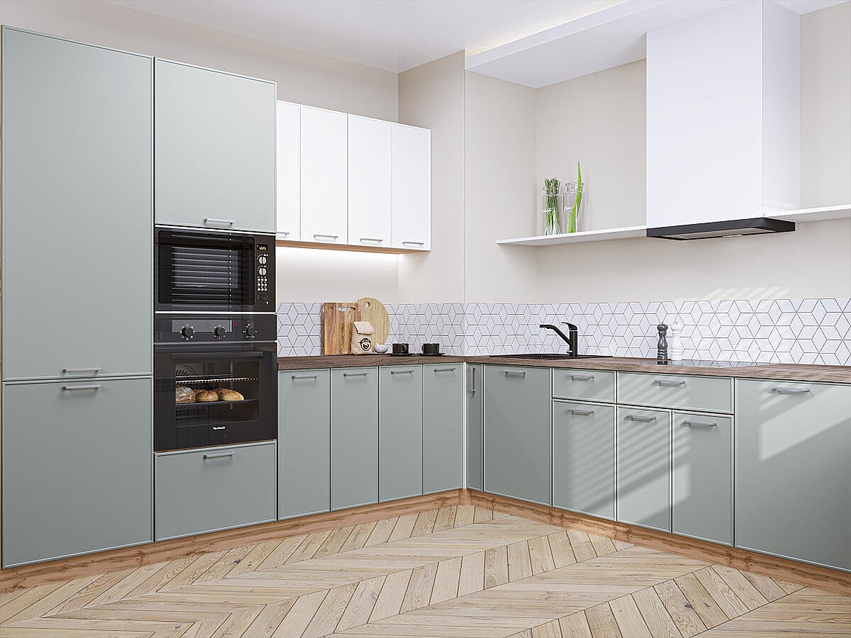 Кухня Квадро имеет безупречную архитектуру фасада и лаконичный рисунок фрезеровки. Отличное решение для интерьера в минималистичном стиле. Фасады с узкими рамочными элементами изготовлены из МАФ толщиной 19 мм. Гладкая и приятная на ощупь поверхность устойчива к повреждениям, не потускнеет со временем от воздействия ультрафиолета. При касании на поверхности не остаются загрязнения и отпечатки пальцев.