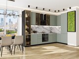 Кухня Квадро имеет безупречную архитектуру фасада и лаконичный рисунок фрезеровки. Отличное решение для интерьера в минималистичном стиле. Фасады с узкими рамочными элементами изготовлены из МАФ толщиной 19 мм. Гладкая и приятная на ощупь поверхность устойчива к повреждениям, не потускнеет со временем от воздействия ультрафиолета. При касании на поверхности не остаются загрязнения и отпечатки пальцев.