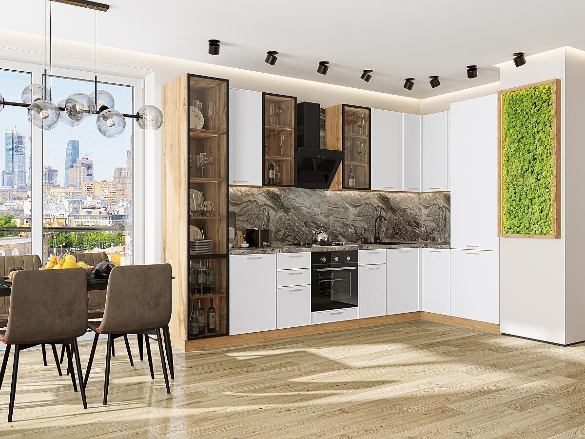 Угловая модульная кухня Квадро-04 Белый - Дуб Вотан 2340*3400/1600*600