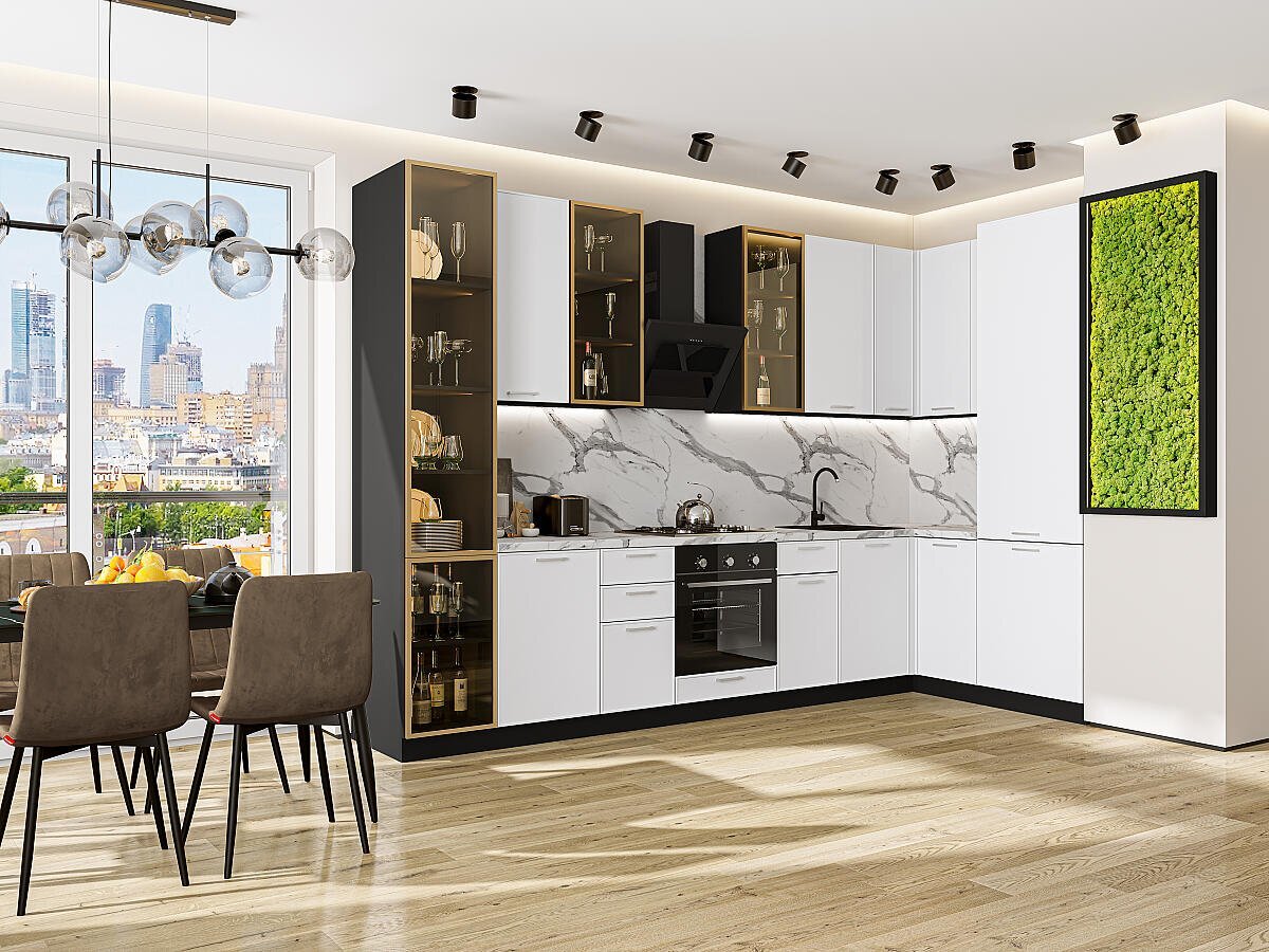 Угловая модульная кухня Квадро-04 Белый - Graphite 2340*3400/1600*600
