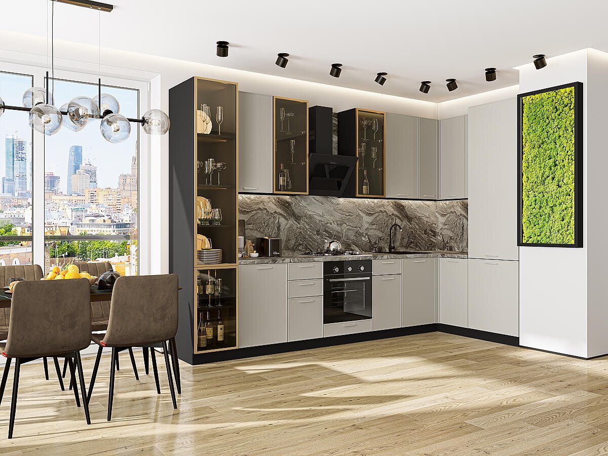 Угловая модульная кухня Квадро-04 Кашемир - Graphite 2340*3400/1600*600