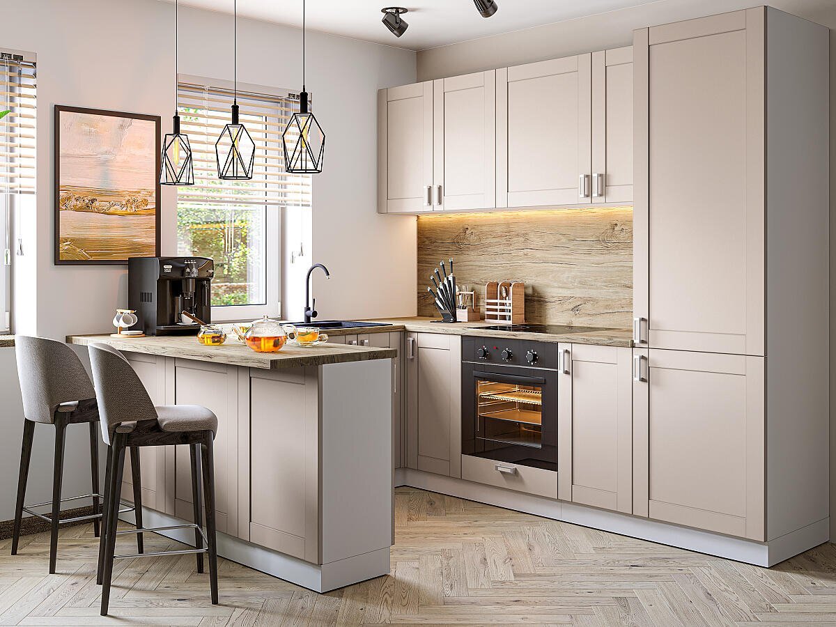 Кухня «Лофт» — это элегантность, лаконичность и функциональность, объединенная в красивой стильной оболочке. Минимализм стиля кухни выражается в строгих прямоугольных формах рамочно-филенчатых и щитовых фасадов. Отделка фасадов в цвете Cappuccino Veralinga: Эко Шпон — структурный материал с защитным слоем оверлея (Южная Корея). Отличается высокой стойкостью к истиранию и механическим повреждениям. Фасады с покрытием ПЭТ можно отнести к антивандальным — у них хорошая устойчивость к царапинам и выцветанию, за счет чего фасады сохранят свой внешний вид на протяжении многих лет, Эргономичная и уютная модульная кухня «Лофт» идеально впишется в ваше жизненное пространство как в малогабаритной квартире, так и в большой кухне-столовой.