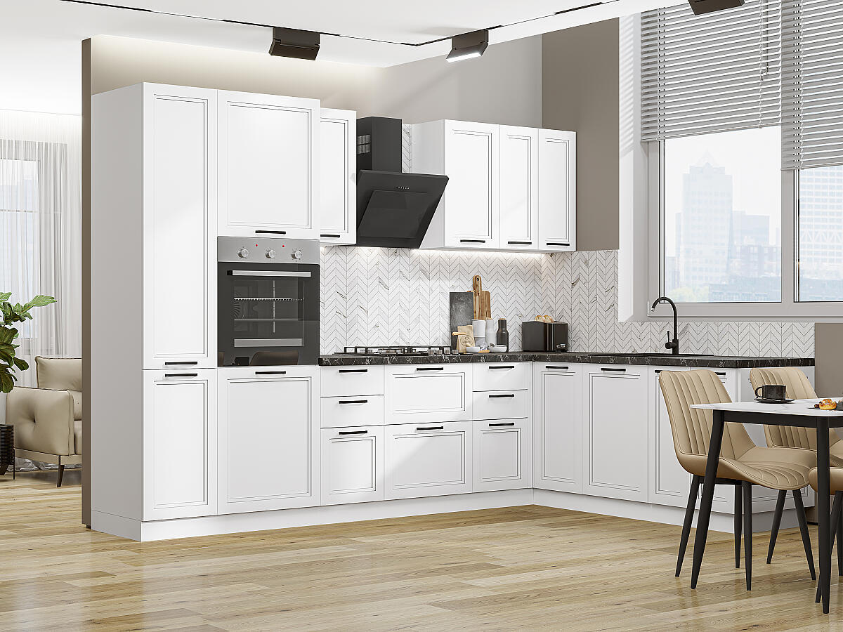 Угловая модульная кухня Нео-03 White Silk - Белый 2140*3000/2100*600