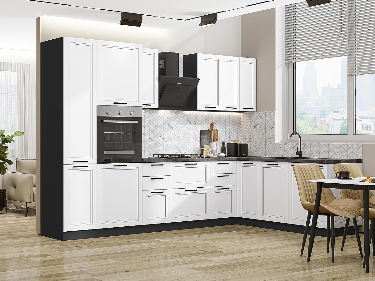 Угловая модульная кухня Нео-03 White Silk - Graphite 2140*3000/2100*600