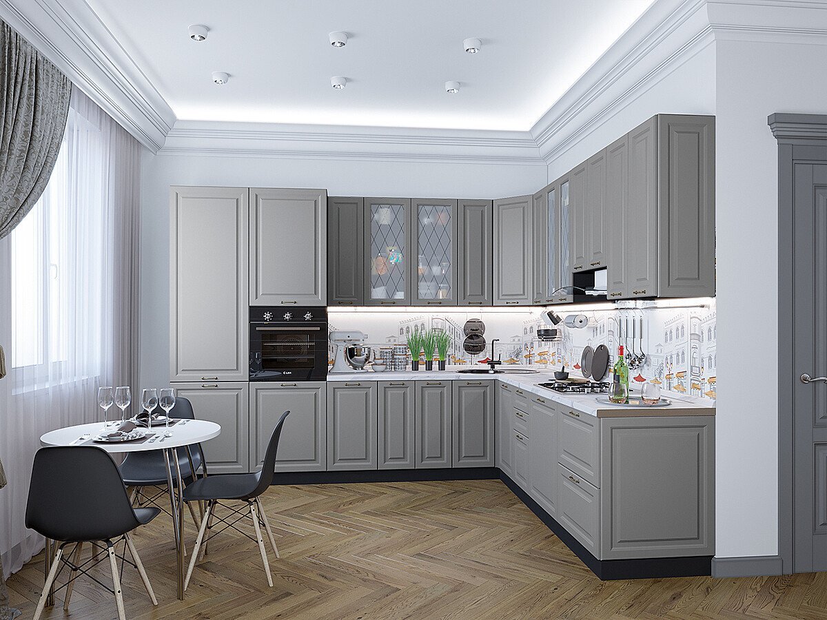 Угловая модульная кухня Ницца-04 Графит - Graphite 2340*3200/2700*600