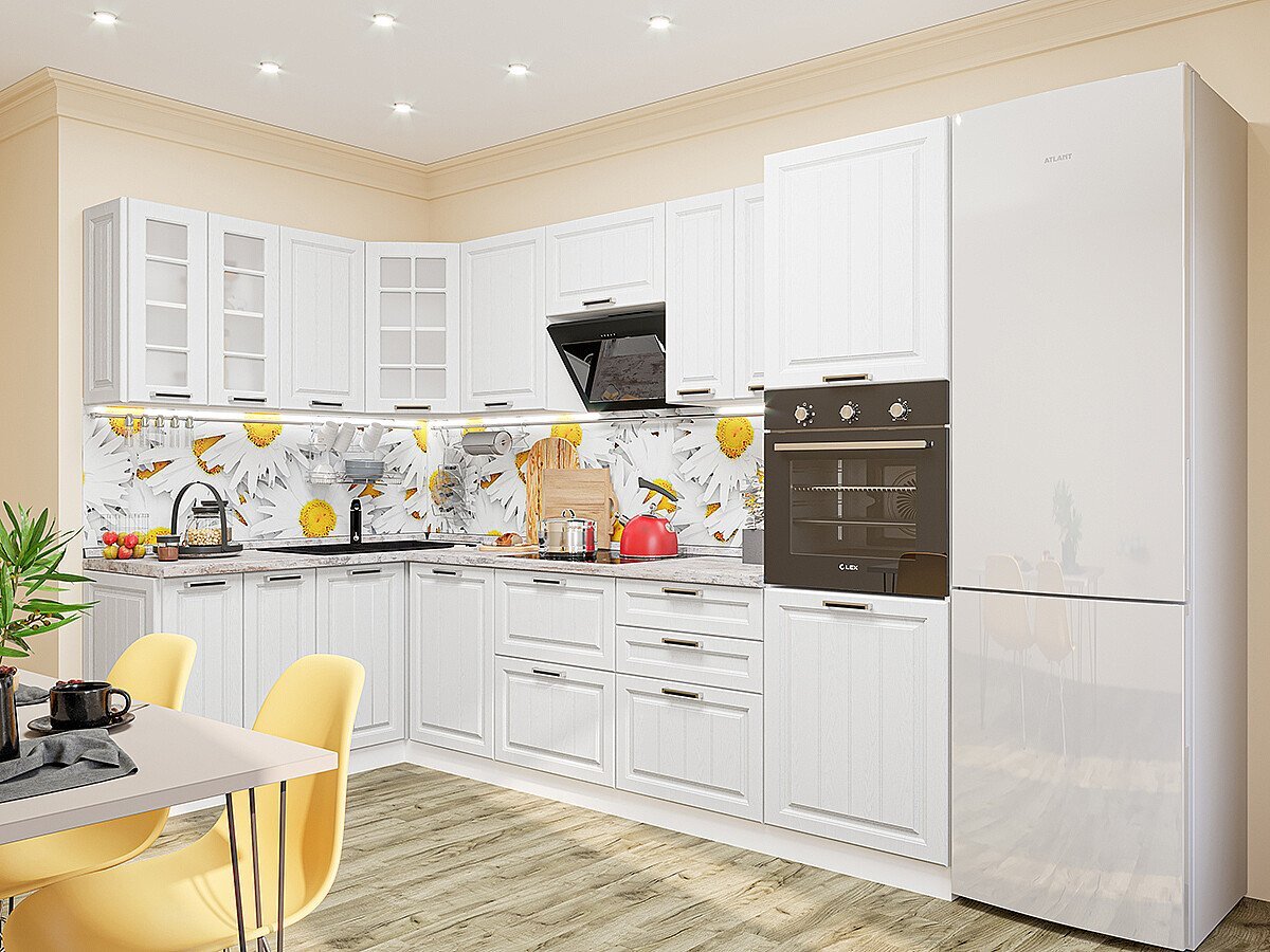 Угловая модульная кухня Прага-03 Белое дерево - Белый 2140*1600/2800*600