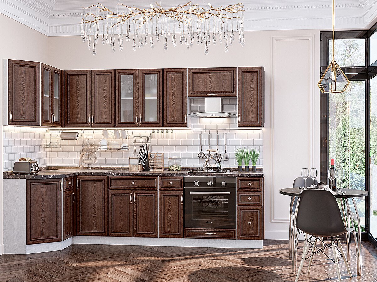 Угловая модульная кухня Шале-03 Brown Dreamline - Белый 2140*1300/2800*600