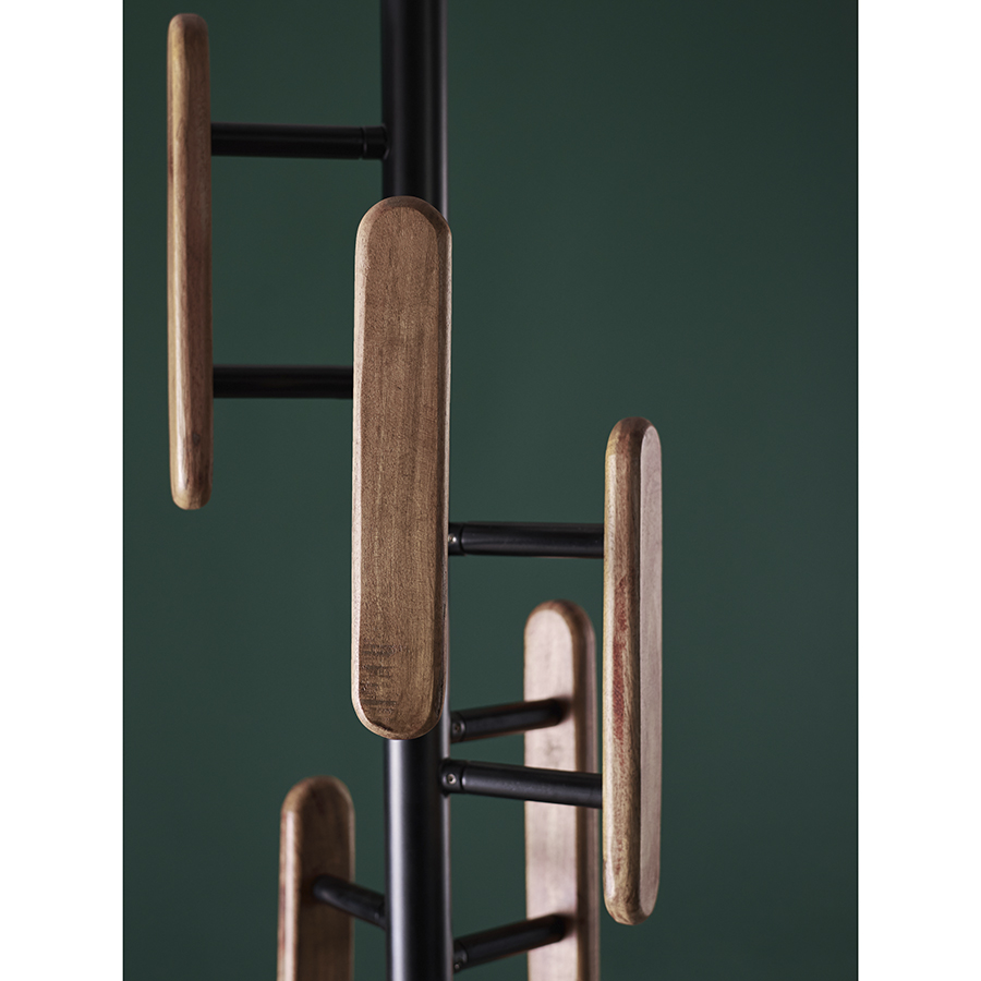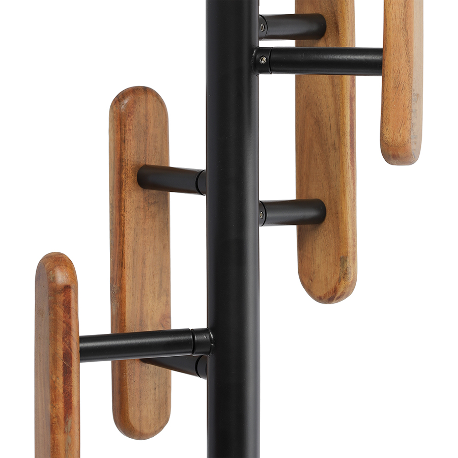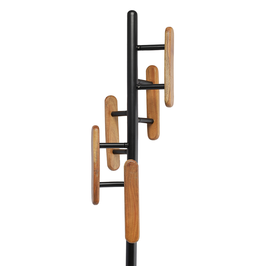 Материал: железо, дерево. Размеры: 40,8х40,8х186 см. Вес: 7,2 кг. Длина крючков: 10 см. Максимальна нагрузка на один крючок: до 7 кг. Максимальная нагрузка на вешалку: до 20 кг. Цвет: черный.