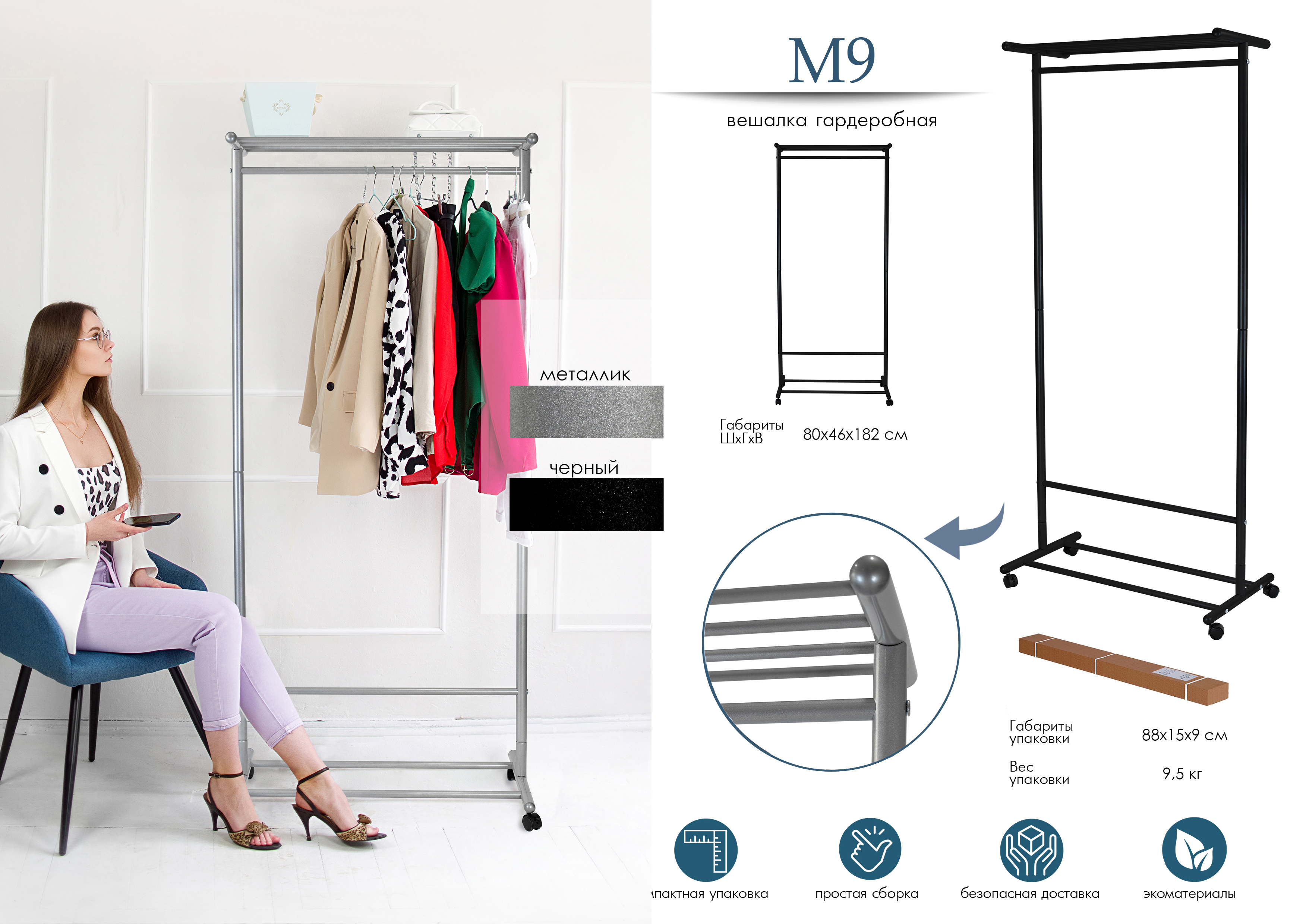 Вы можете купить Вешалка напольная Мебелик на колесах М 9 чёрный оптом в нашем магазине, предложим цену с оптовой скидкой.