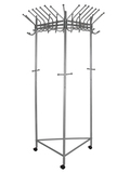 Общественная вешалка - мобильный гардероб. Идеально подходит для небольших офисов. Гардероб рассчитан на 24 посетителя с размещением одежды, головных уборов, сумок, зонтов Возможно исполльзовать вешалки-плечики Идеально размещается в углу помещения и не занимает места, возможно использовать номерки Конструкция обеспечивает устойчивость при максимальной нагрузке Вешалка легко собирается без помощника, компактно упакована Вешалка напольная - незаменимый предмет для хранения верхней одежды и носимых вещей в коридор, прихожую. Будет хорошей альтернативой вешалке настенной. Отлично подойдет и для дома и как офисная. Крючки можно использовать и для плечиков, и для одежды, и для размещения органайзера. Отличный комплект в прихожую, в гардероб, в гардеробную комнату, в баню, в ванную, на балкон - вешалка напольная, настенное зеркало и банкетка в одном стиле. Вешалка стойка напольная для хранения вещей может быть как деревянная, так и металлическая. Материалы: стальная труба d25 мм., колес. опоры Упаковка: 100х56х5 см, 79х53х7 см, 2 места Вес: 14.6 кг Цвет: металликХарактеристики