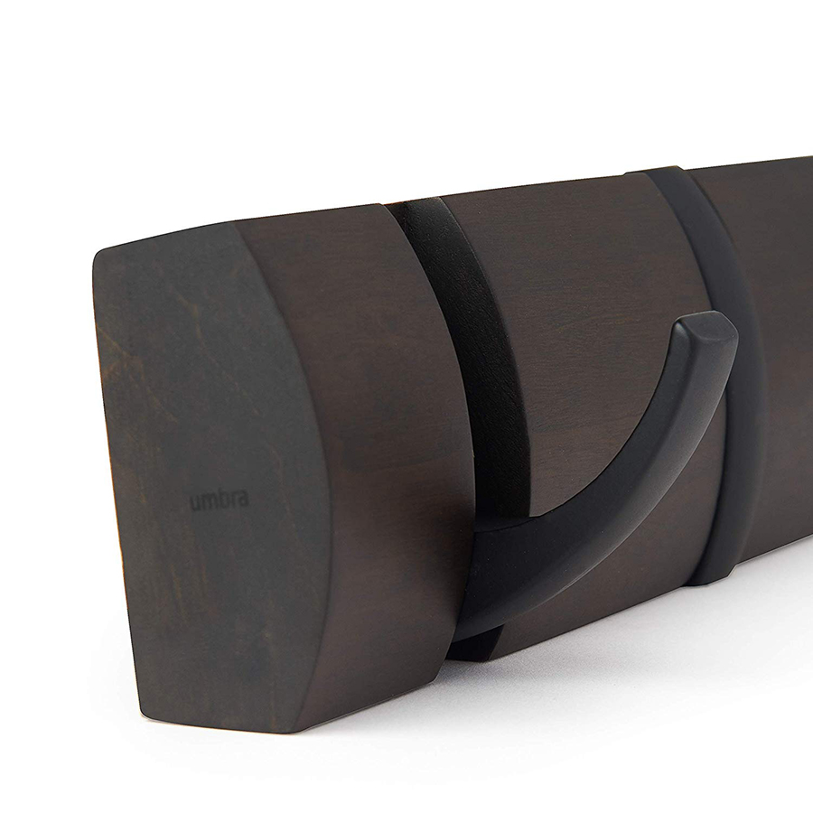 Вешалка настенная UMBRA Flip, 84,5 см, черная/орех, 8 крючков