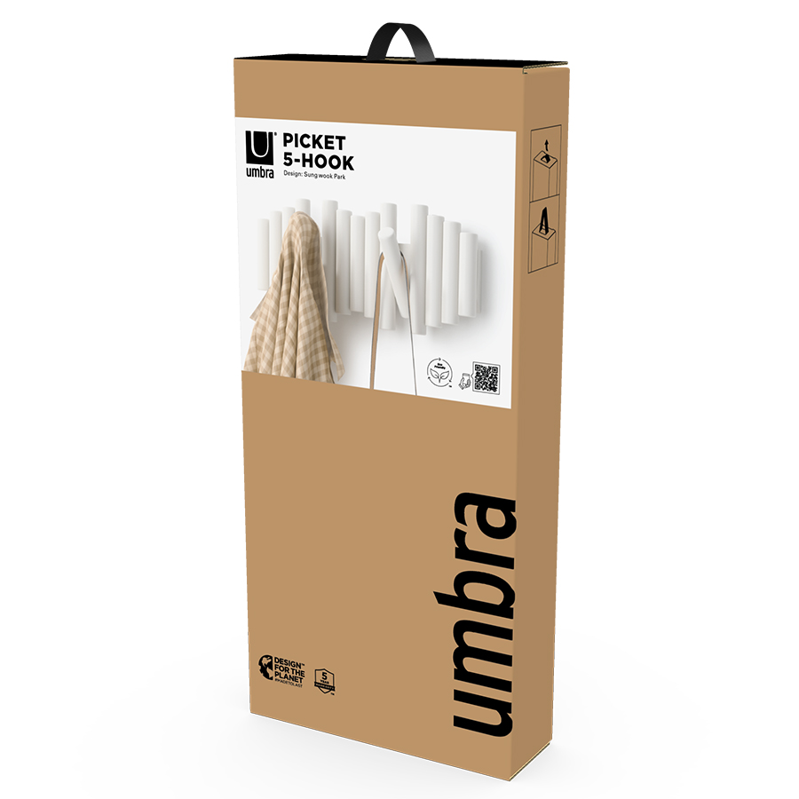 Вешалка настенная UMBRA Picket, 5 крючков, белая
