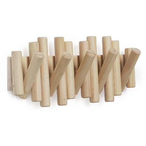 Настенная вешалка Picket превращает функциональность в искусство и идеально подходит для всех, кто ценит красоту в каждой детали. Такой аксессуар не только поможет сделать пространство более организованным, но и станет его стильным акцентом. Вешалка состоит из сосновых колышков разных размеров и оснащена пятью откидными крючками, каждый из которых выдерживать вес до 2,3 кг. Если крючки не используются, их можно легко убрать, превратив функциональный элемент в арт-объект. В комплект входит необходимый крепеж для быстрой и простой установки.Используйте вешалку Picket от Umbra в прихожей для пальто и сумок, в спальне для аксессуаров или в гостиной для декоративных элементов – она прекрасно смотрится в любом интерьере.