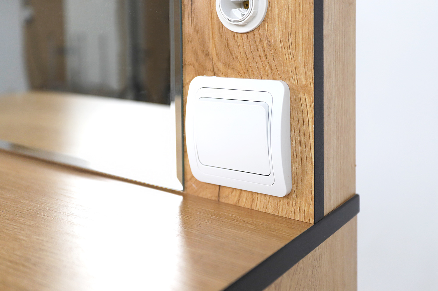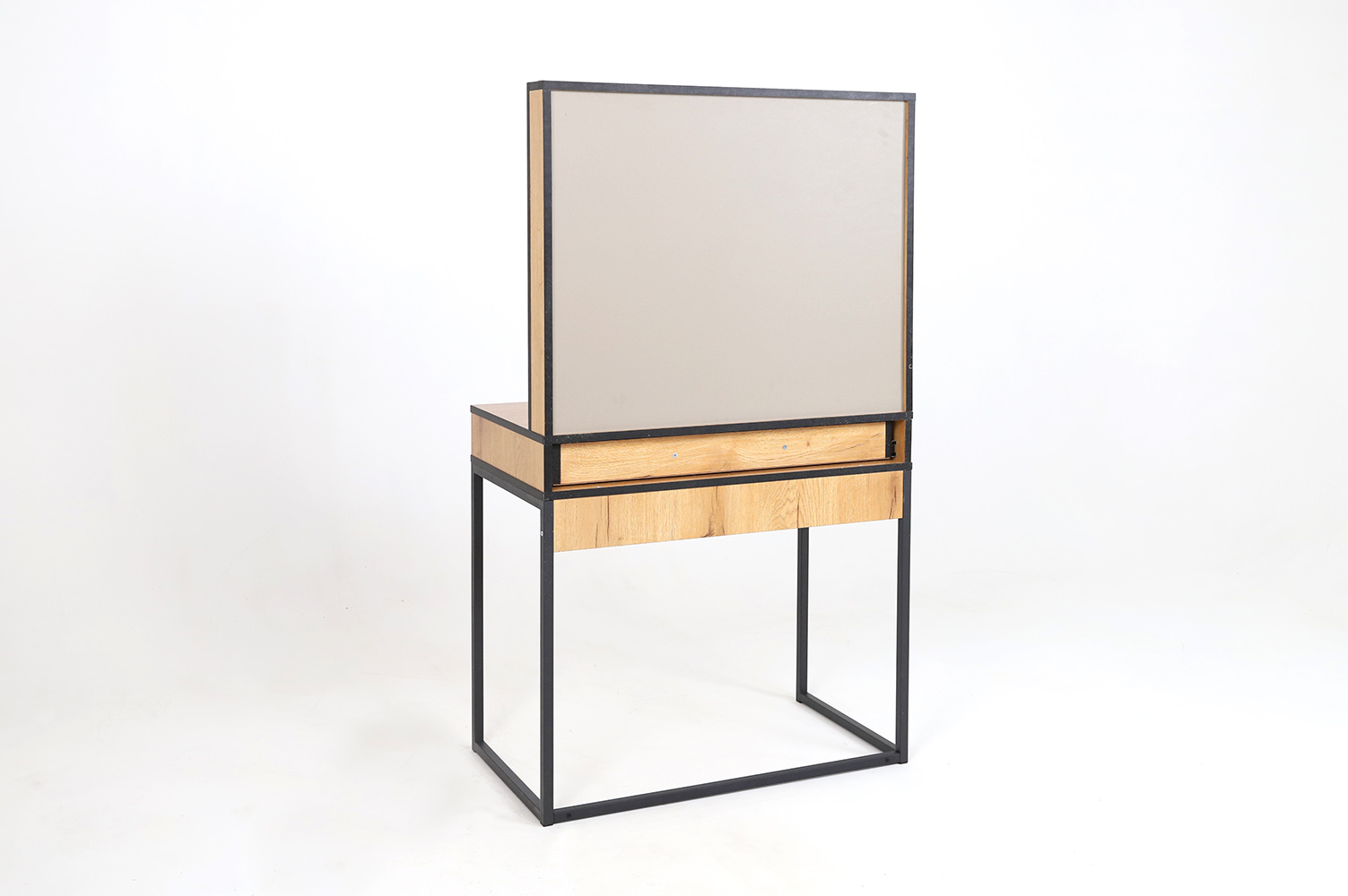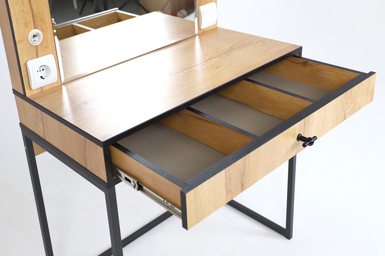 Трюмо из серии “Берген” имеет опоры из металлической профильной трубы, вместительный ящик с тремя отсеками для мелочей и большое зеркало с фацетом, в которое смотреться одно удовольствие!Характеристики