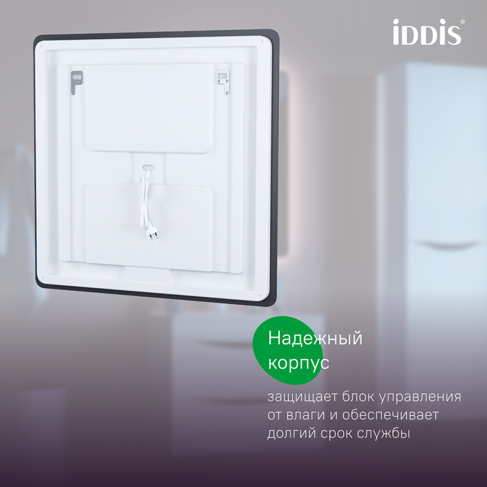 Стильное зеркало из коллекции Cloud с увеличенной высотой до 80 см не имеет рамы, за счёт чего смотрится воздушно, легко и не перегружает пространство, а, наоборот, расширяет его. Благодаря универсальному дизайну подойдет к интерьеру любой современной ванной комнаты. • Ореольная светодиодная подсветка создает приятный мягкий фронтальный свет. Цвет освещения – холодный. • Функция подогрева предотвращает появление конденсата – нет необходимости протирать зеркало после принятия душа. • Удобное сенсорное управление подсветкой, подогревом и диммером с помощью касания. • Надежная силиконовая оболочка защищает блок управления и диодную ленту интерьерной подсветки от влаги и пара обеспечивает долгий срок службы. Её легко мыть от пыли и налета. • Миниатюрная окантовка черного цвета выполнена методом пескоструйной обработки прямо на стеклянном полотне. Гарантия на зеркала IDDIS® – 3 года. (с) Авторский текст, октябрь 2024 г.Инструкции
