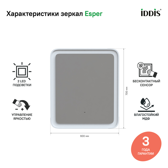 Зеркало с подсветкой IDDIS Esper, 60 см, ESP6000i98