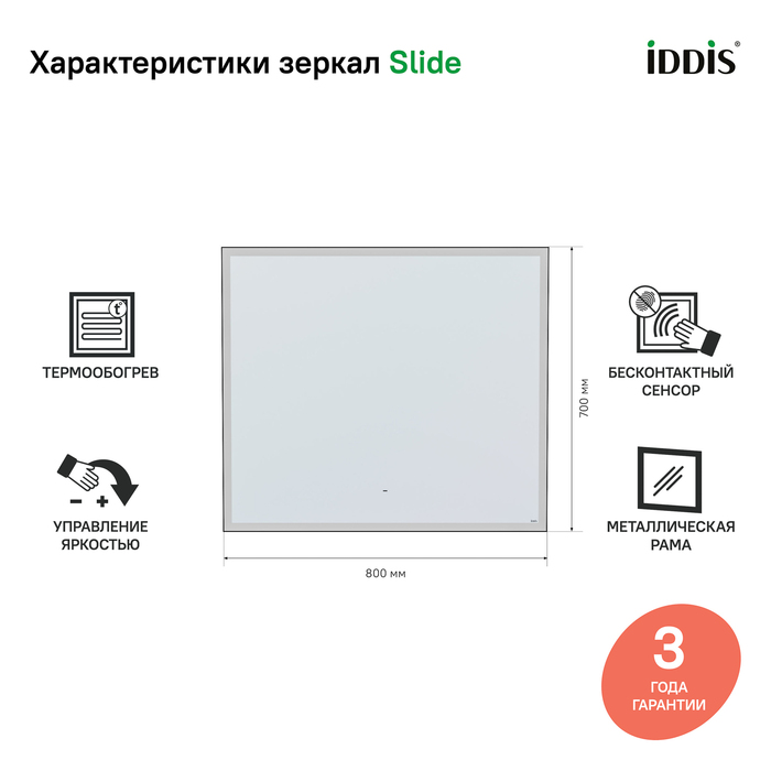 Зеркало с подсветкой IDDIS Slide, 80 см, SLI8000i98