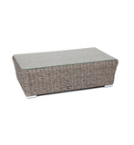 Журнальный столик «Капучино» из искусственного ротанга вида "гиацинт" серого оттенка обладает прочным каркасом, изготовленным из алюминия, оплетка которого произведена ручным способом. Поверхность защищена столешницей из 5 мм стекла. Размеры модели: 1100×660×340 мм.Характеристики