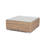 Журнальный столик «Лунго» украсит собой любую зону отдыха. Размер модели – 740×740×300 мм. Компактные габариты позволяют удобно разместить мебельный элемент в месте с ограниченным свободным пространством. Столик имеет прочный алюминиевый каркас. Ручное плетение вида "гиацинт" сделано из искусственного ротанга и представлено в соломенном цвете. У журнального столика есть практичная столешница. При ее изготовлении используется закаленное стекло толщиной 5 мм. Материал характеризуется износостойкостью и долговечным сроком службы.Характеристики