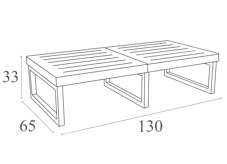 Столик пластиковый журнальный Siesta Contract Mykonos, 1300х650х330, серебристый