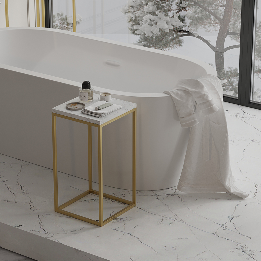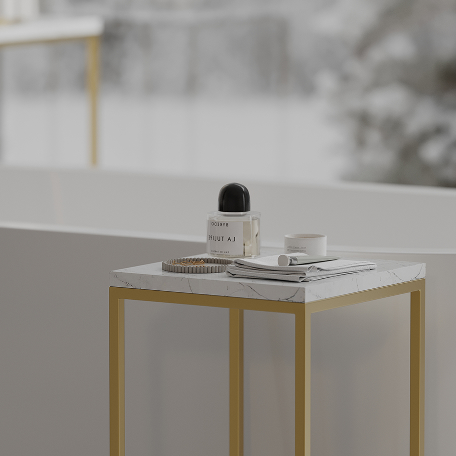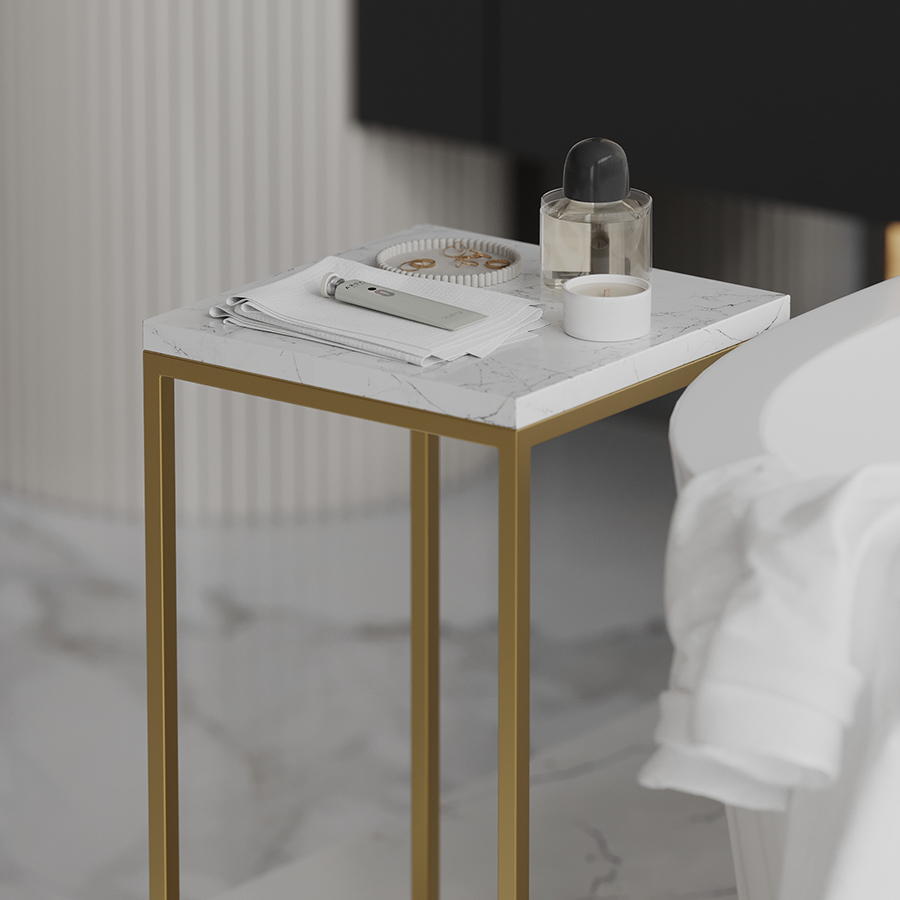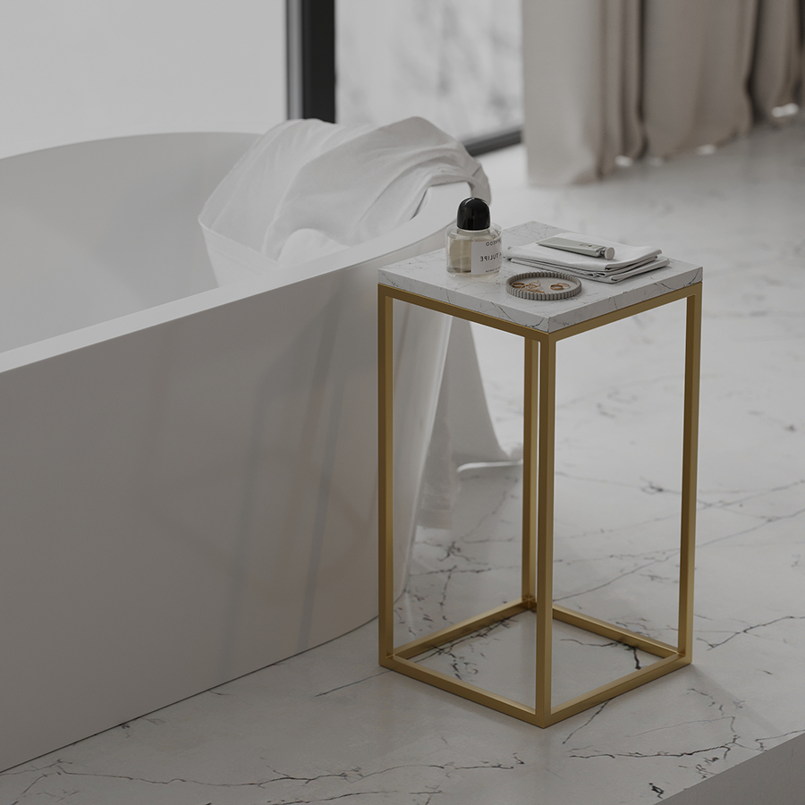 - За счет столешницы из мрамора и основания золотистого цвета модель выглядит презентабельно и элегантно.